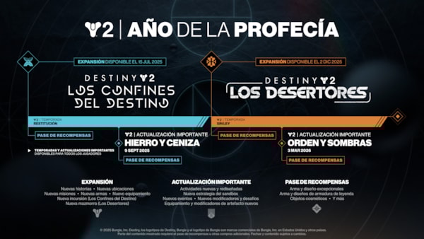 A partir del Año de la Profecía, cada año contará con cuatro piezas de contenido importantes: dos expansiones de pago y dos actualizaciones importantes que estarán disponibles para todos. Esta nueva estructura no requiere pagar nada para acceder a las actividades de temporada con el objetivo de que todos los jugadores puedan disfrutar de un mundo en constante evolución juntos.