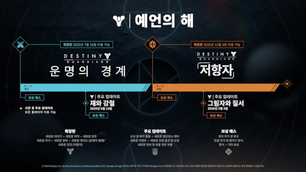 | 데스티니 가디언즈: 운명의 경계 (확장판) | 7월 16일 | 유료 콘텐츠 |