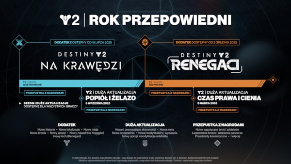 Podczas prezentacji dodatku Destiny 2: Na Krawędzi, Bungie zapowiedziało również drugi dodatek Roku Przepowiedni Destiny 2: Renegaci, którego premierę zaplanowano na 2 grudnia 2025 r. Inspirowany legendarnym światem Star Wars dodatek Renegaci łączy charakterystyczną fabułę i rozgrywkę gry Destiny z tematami i motywami z kultowej serii science fiction.